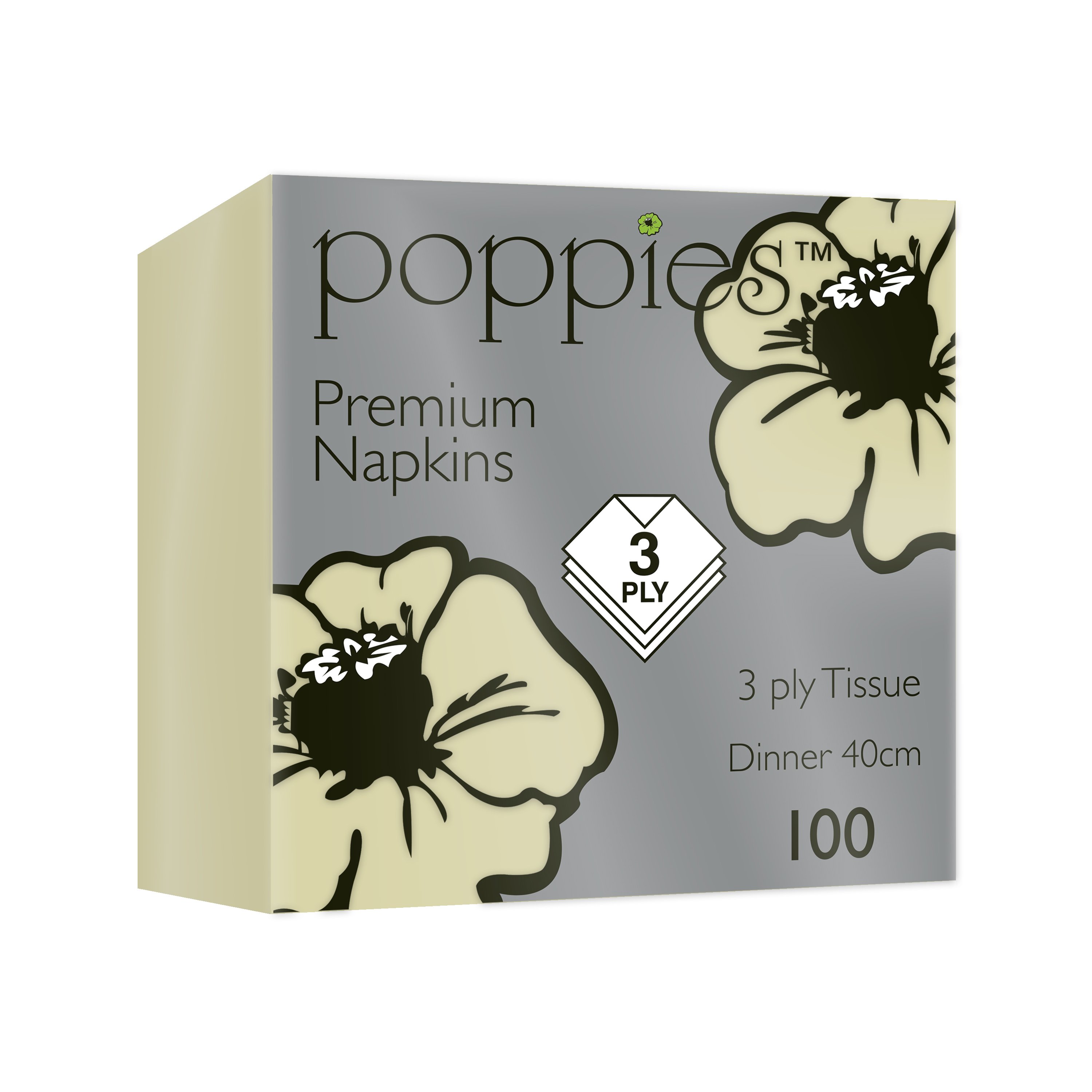 Dimensions: 40 × 40cm, 3-ply. 1,000 napkins per case (10 packs of 100).