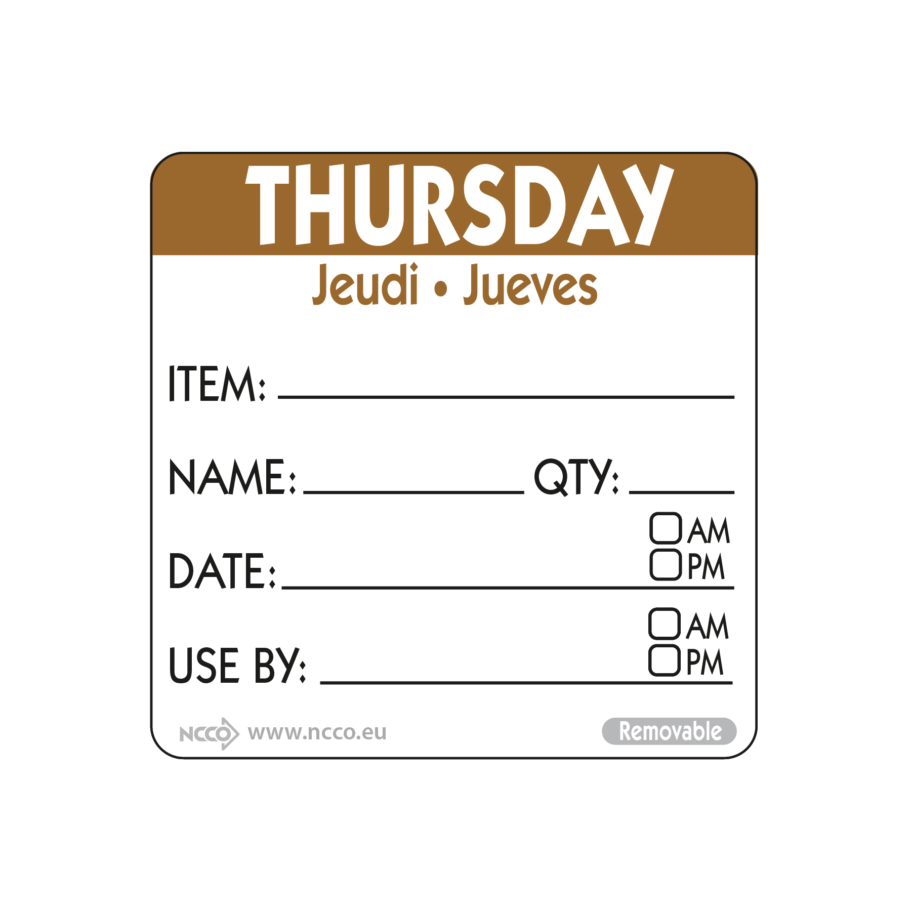 These 50mm, trilingual, removable labels help keep prepped food organised with important information such as item, date and use-by data. These are made with a strong, but removable adhesive.