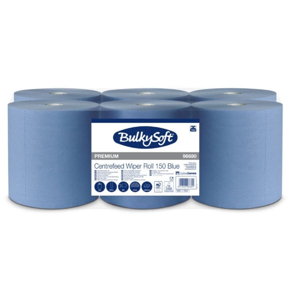 BulkySoft Premium Blue Centrefeed Rolls provide a strong, absorbent wiping solution designed for professional cleaning and food preparation environments.