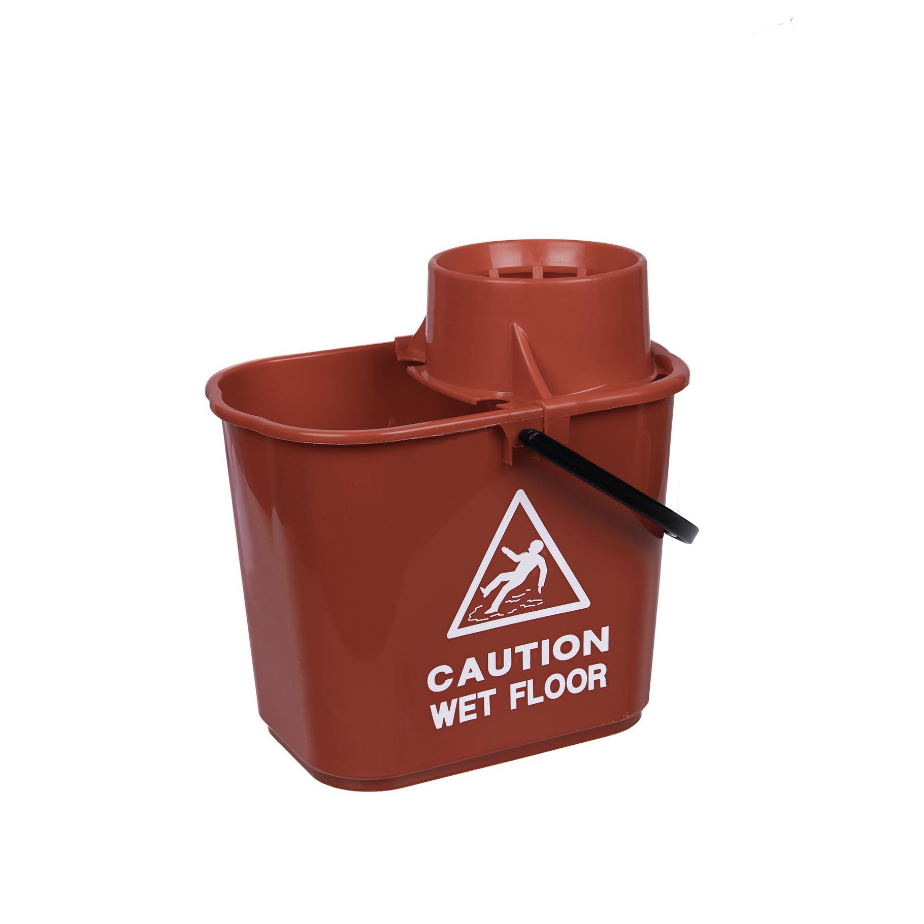 The Eco Professional Bucket & Wringer 15L is a sturdy eco bucket made from 97% recycled plastic with a high-profile clip-on wringer to reduce spillage. Designed for larger socket mops, the bucket is printed with ‘Caution wet floor’ on two sides and graduation marks. Matching colour coded bucket and wringer with black handle.