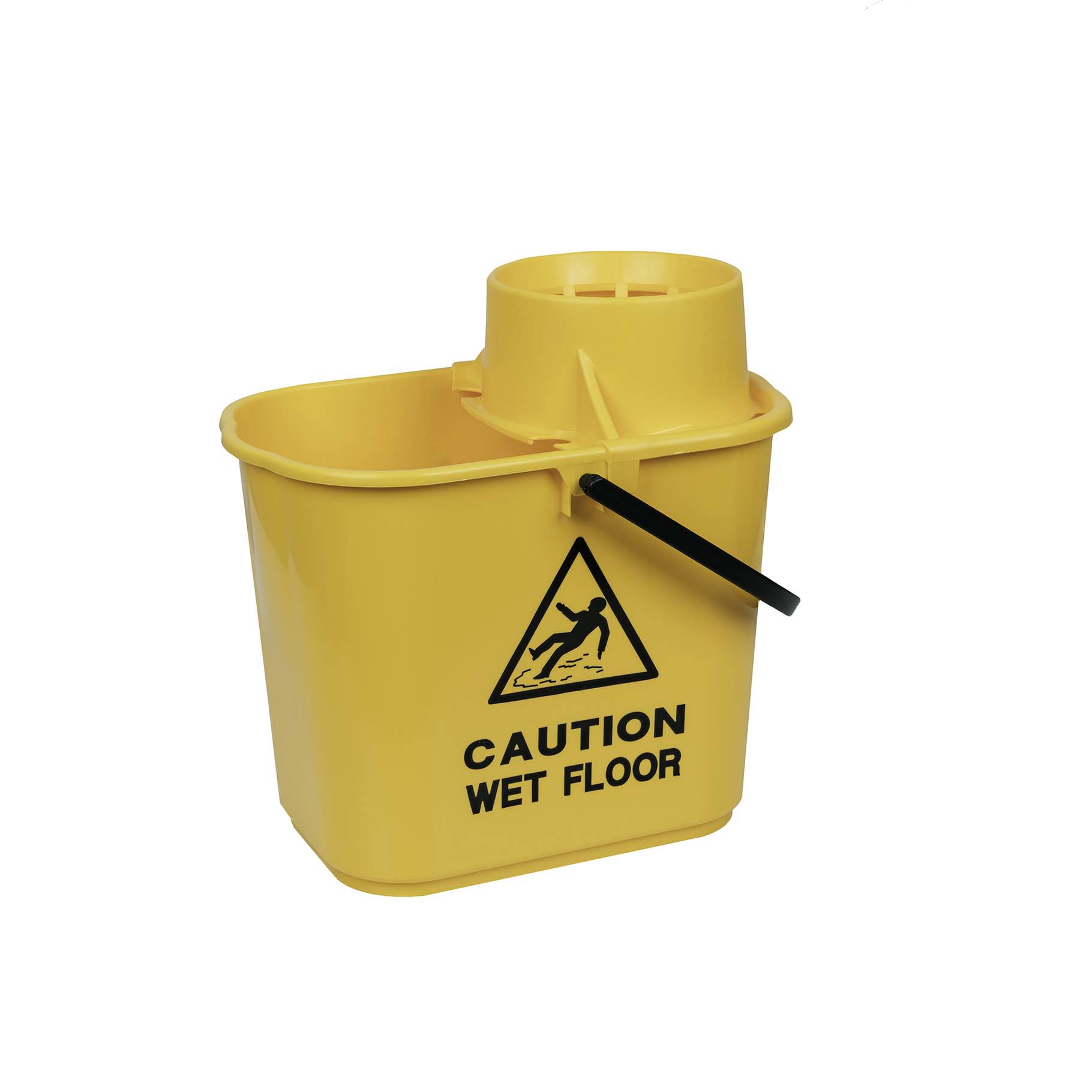 The Eco Professional Bucket & Wringer 15L is a sturdy eco bucket made from 97% recycled plastic with a high-profile clip-on wringer to reduce spillage. Designed for larger socket mops, the bucket is printed with ‘Caution wet floor’ on two sides and graduation marks. Matching colour coded bucket and wringer with black handle.