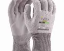 Highly cut resistant 13 gauge black/white UHMWPE liner with grey PU coated palm.