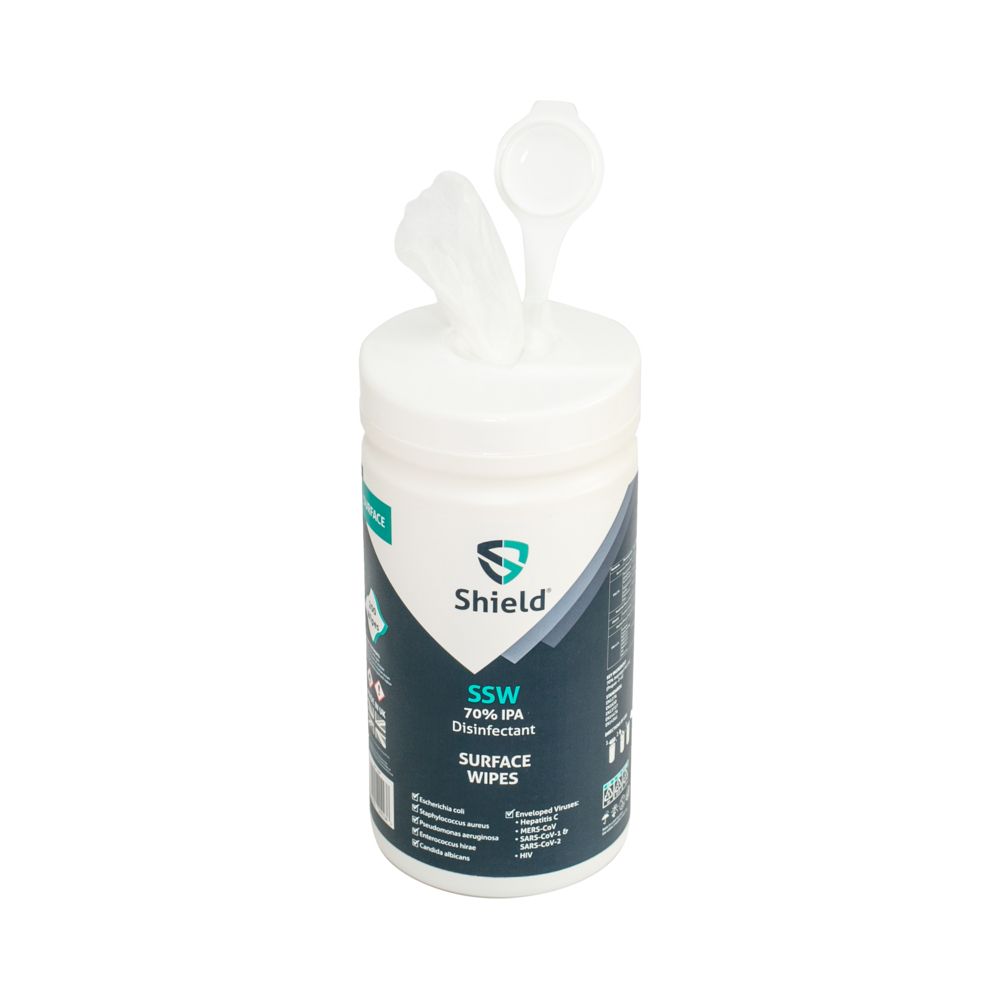 SSW Shield® Disinfectant Surface Wipes (200-pack). impregnated with a 70% isopropyl alcohol solution, these wipes are designed for effective surface disinfection and provide a practical solution for maintaining cleanliness. With 200 wipes per pack, they offer convenience and reliability for a variety of settings.
