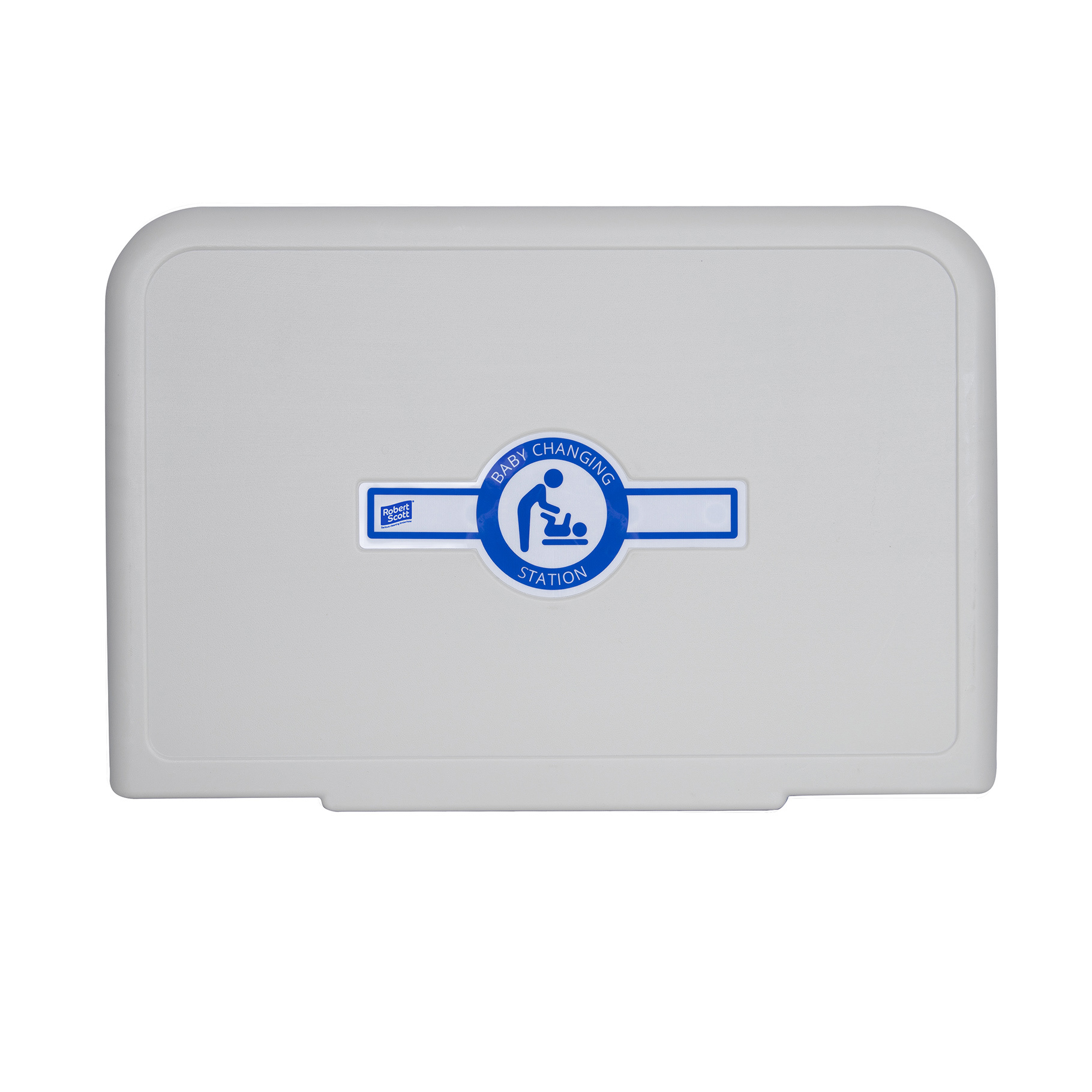 A certified and sturdy wall mounted fold-down baby changing station for use in washrooms. Features built-in antibacterial protection to inhibit the growth of germs, safety strap and built-in hooks. Folds away when not in use.
