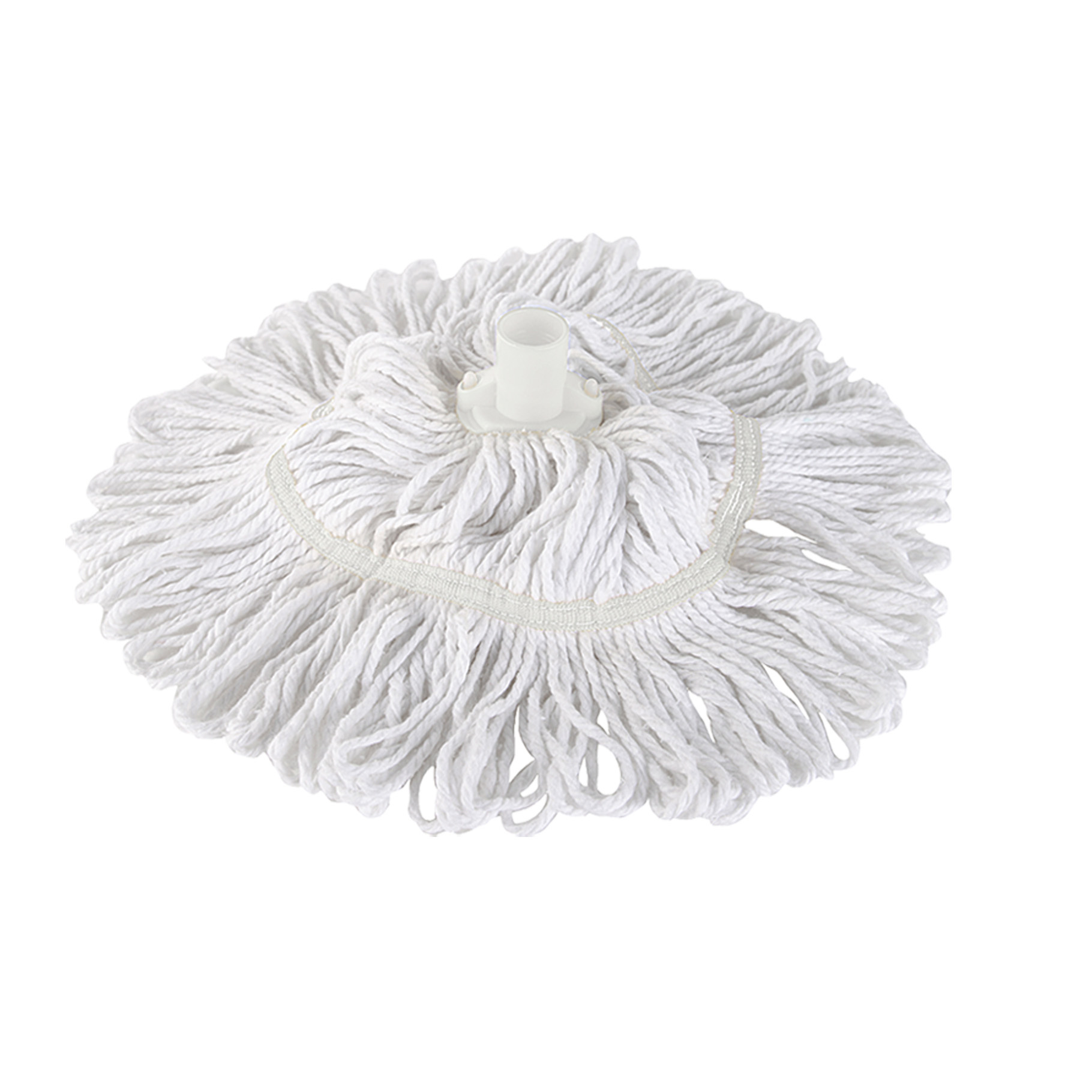 The Hygiemix T1D Socket Mop 300 are a hardwearing mop made from a unique blend of bleached cotton and synthetic yarns. The stayflat band holds the shape enabling the mop to cover a larger floor area, whilst the looped end yarn prevents linting and the yarn tangling is use.