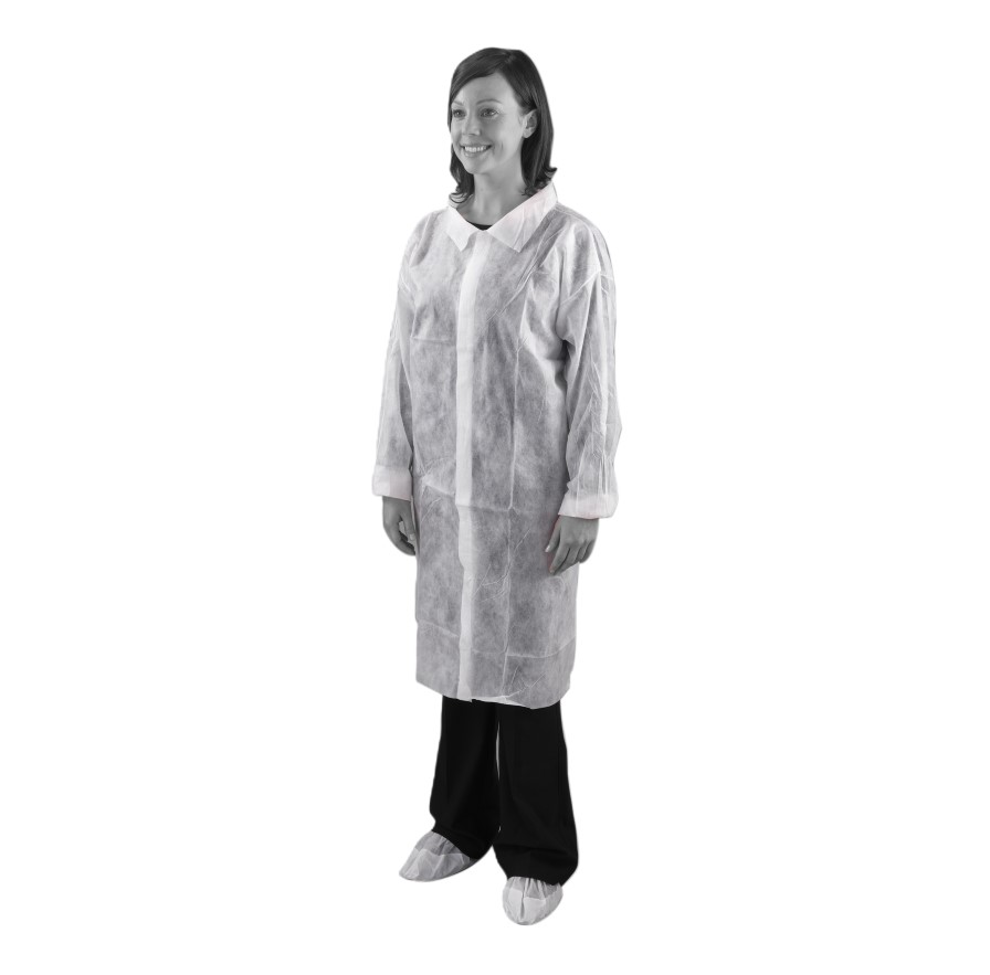 The Shield DC02 Non-woven Visitor Coats provide practical, hygienic protection across various industries. Made from breathable non-woven polypropylene, these visitor coats offer a comfortable barrier against dirt and non-hazardous splashes, making them ideal for extended wear. Designed with hygiene in mind, they feature elasticated collars and cuffs, plus Velcro fastenings, but no pockets.
