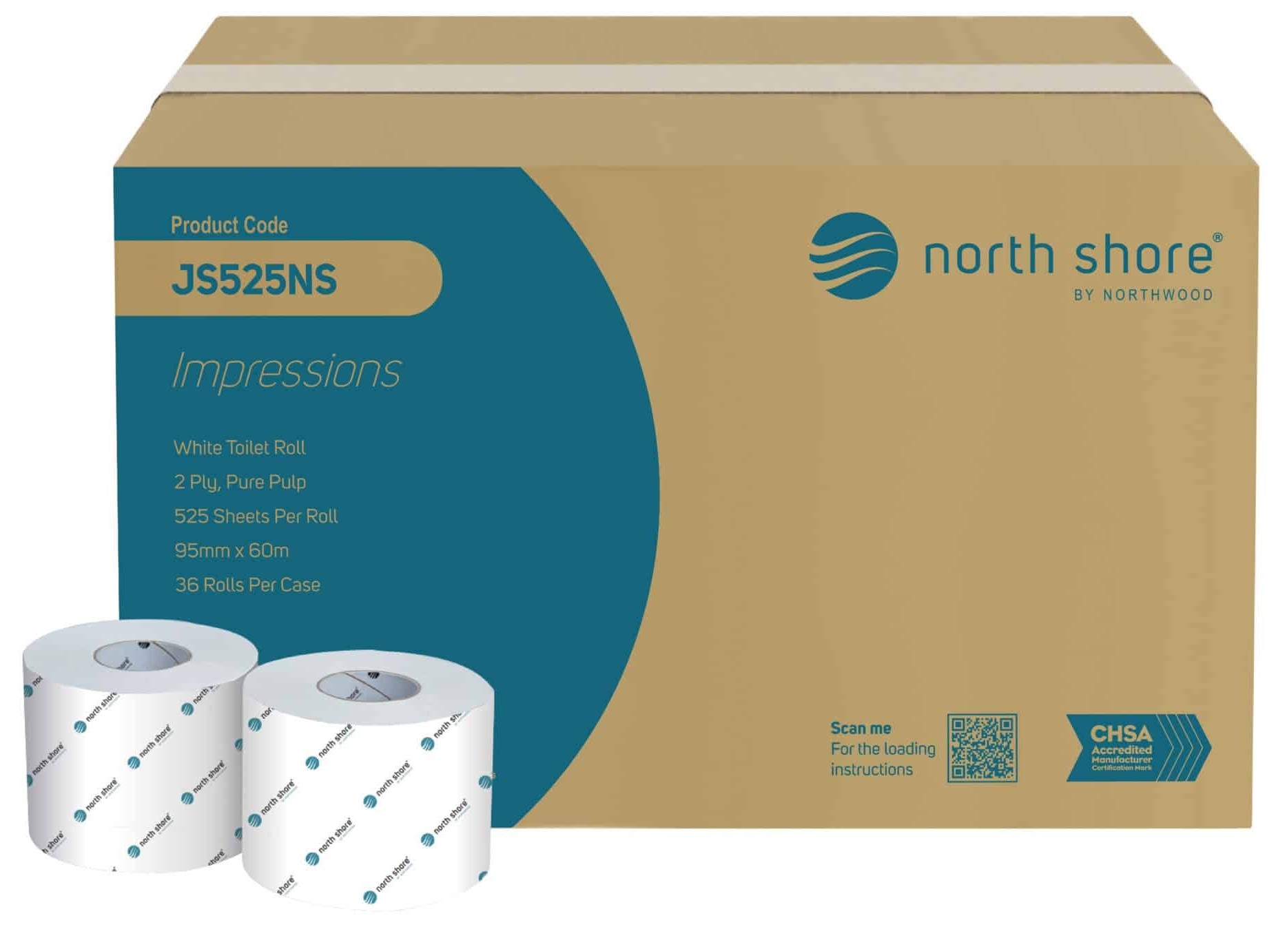 Elevate washroom luxury with the North Shore JS525NS Laminated System Toilet Roll. This 2-ply toilet tissue features a pure pulp, laminated, and embossed design for enhanced softness and superior strength. Designed for fast breakdown in water, it prevents plumbing issues while delivering a premium washroom experience.