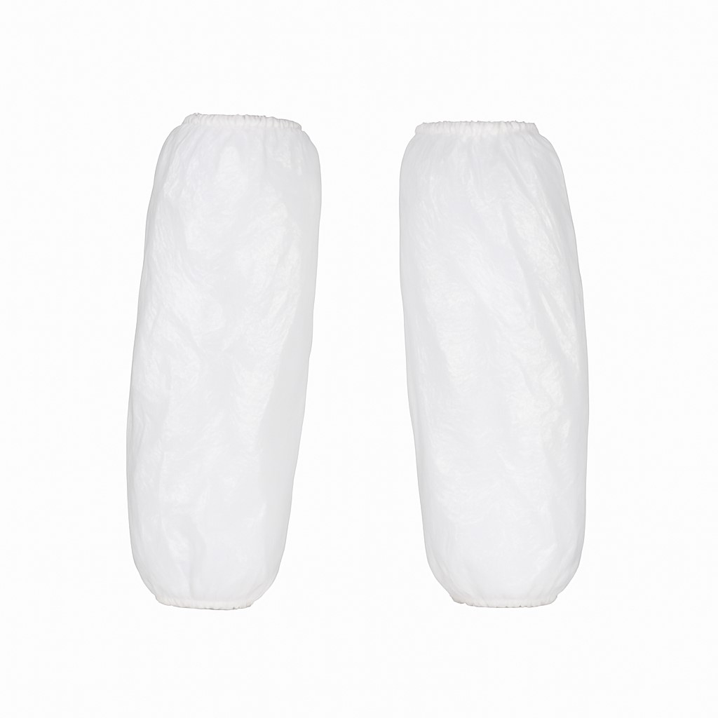 White Polythene over sleeves available in hand-sealed or machine-sealed format. Widely used in the food industry. No elastic tie on bundles in accordance with food safety regulations. One size fits all