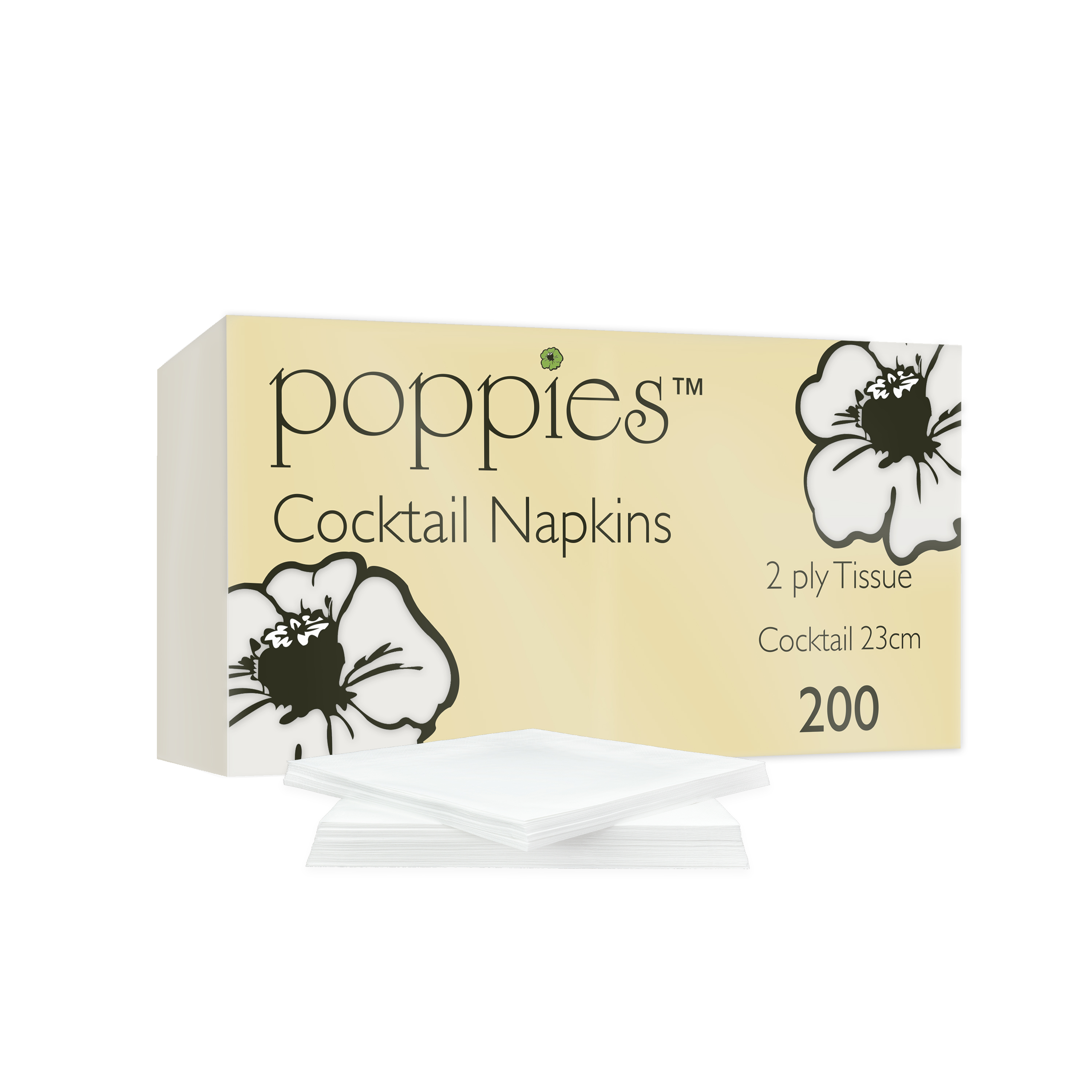 Poppies white cocktail napkins provide a practical and hygienic solution for serving drinks, snacks, and light food items in hospitality environments.