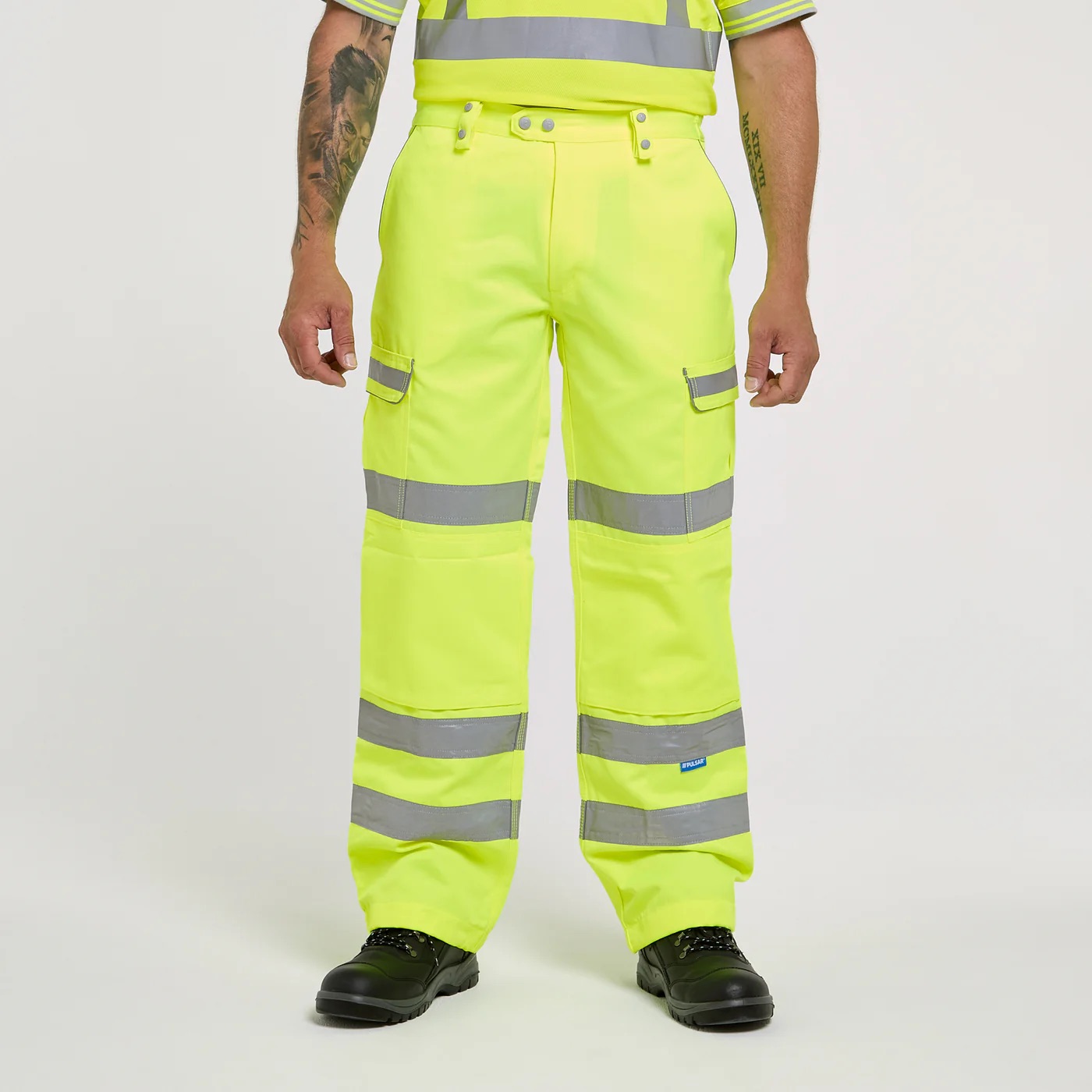 Built for durability and comfort, these Hi-Vis Combat Trousers combine Teflon™ protection, triple-stitched strength, and practical storage. Designed for professionals who need reliable high-visibility workwear, they keep you visible, dry, and comfortable in tough environments.