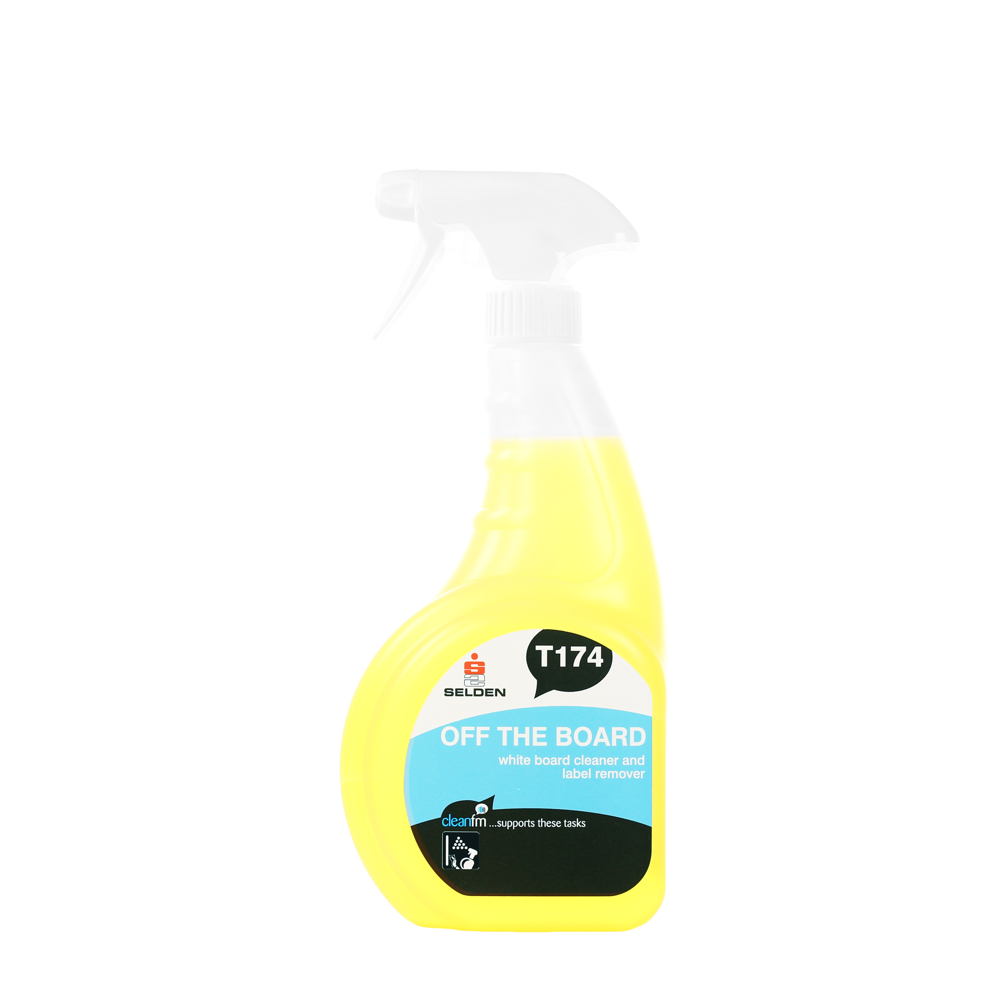 Selden Off The Board Cleaner is designed to clean and restore whiteboard surfaces by removing marker ink, grease, and grime. It can also be used effectively as a label remover, making it a versatile cleaning solution for offices and commercial environments.