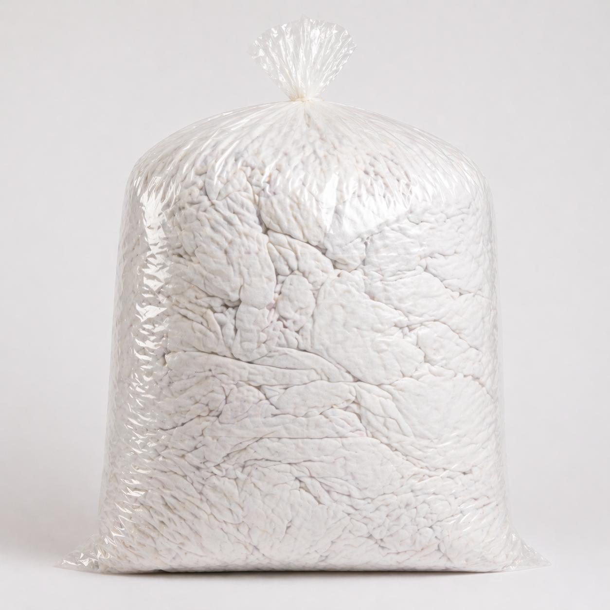 The Overall White Cotton Mix Rag Wipers provide a reliable and cost-effective solution for general cleaning tasks. Produced from recycled white cotton garments, these wipers deliver good absorbency and strength, making them suitable for a wide range of maintenance and cleaning applications.