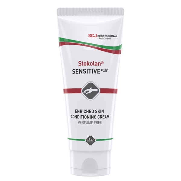 The Stokolan® Sensitive PURE 100ml tube is a rich skin conditioning cream designed for dry, very dry, and sensitive skin. It provides long-lasting hydration and nourishment, ideal for use in industrial, food, and healthcare environments, especially for employees with sensitive skin.