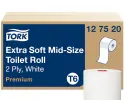 The Tork Twin Mid-size Toilet Roll Dispenser system is a modern and efficient system ideal for low to medium-traffic washrooms with a high focus on guest satisfaction. It ensures high efficiency and that toilet paper is always available for guests. The Premium Tork Soft Mid-size Toilet Roll offers a superior look and feel with the right performance.
