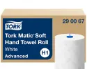 • The Tork Matic® Soft Hand Towel Roll (System H1) has dimensions of 21 cm (W) x 19 cm (H) x 150 m (L), with a 3.8 cm core diameter, 2-ply construction, embossing, and a white colour.