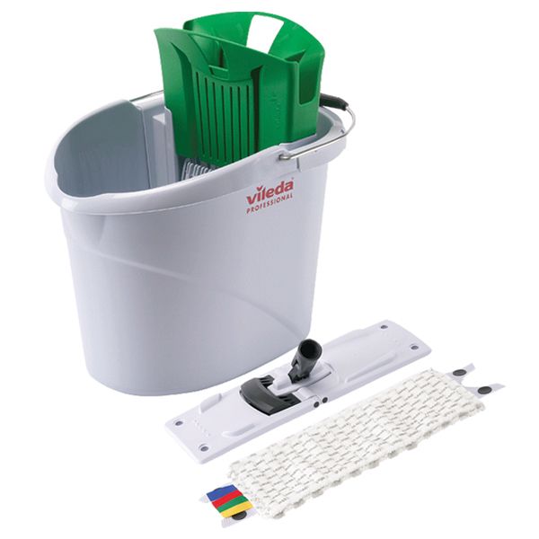 The Vileda® UltraSpeed Mini Starter Kit is a small and compact cleaning system featuring a 10L bucket and bionic press wringer. It is ideal for small-area cleaning tasks such as offices, cafés, small retailers and restaurants.