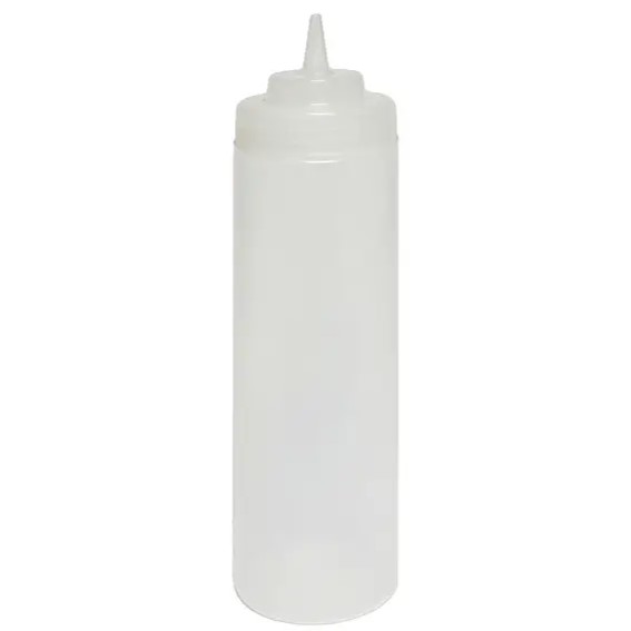 24oz Wide mouth clear sauce dispenser. Great for cafes and takeaways. This clear sauce dispenser is ideal for vinegar and is made from a durable and easy to clean plastic. This dispenser if great for use in bars, cafes and takeaways. The screw top nozzle can be completely removed for ease of cleaning and refilling.