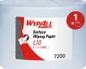 WypAll® L10 7200 is a single-use, 1 ply blue wiping paper roll designed for light-duty surface wiping in industrial and process environments. It features Airflex™ Technology for added strength and absorbency, making it ideal for spray-and-wipe cleaning with disinfectants or detergents.